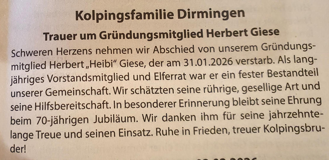Die Kolpingfamilie Dirmingen trauert
